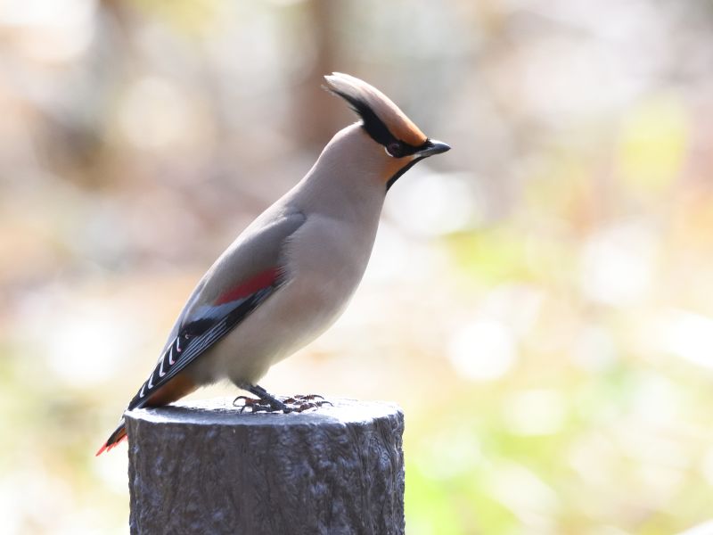 - 『辺りを警戒して』(黄連雀、羽根の一部と尾の端が黄色) 赤い実を食べた後、川辺の木に止まり、猛禽類などに警戒。安全を確認してから川に降りて水飲みと水浴びをしました。会員番号 2329