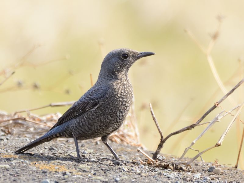 - 『イソヒヨドリ』 浜辺の岩場で巣作りをして、フナ虫などを捕食しているのを撮っていましたが、近年海岸から遠く離れた川沿いや街中でも見られようになっています。写真のイソヒヨドリは、近くの民家の屋根から道路や畑に降りて餌を獲っています。なにを食べているのかな~?。 投稿者 2329