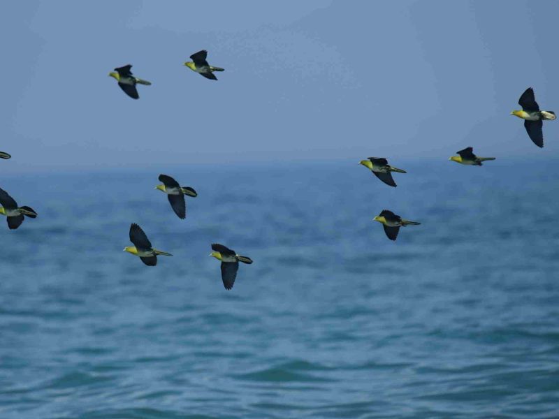 - 『アオバトの群れ』 塩分補給をするため、遠く丹沢の方から海岸にやってきます。(会山行で行った大磯照ヶ崎) 投稿者 2329
